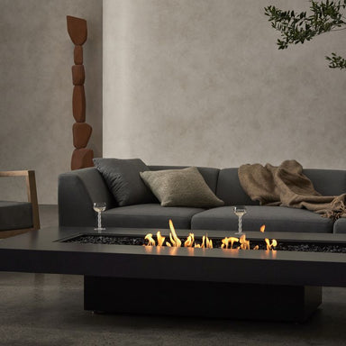 Fire That Grounds the Space — EcoSmart Base 30 Gas Fire Pit Table Low-set and sculptural, the Base 30 Gas Fire Pit Table by EcoS...